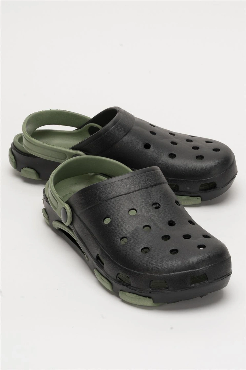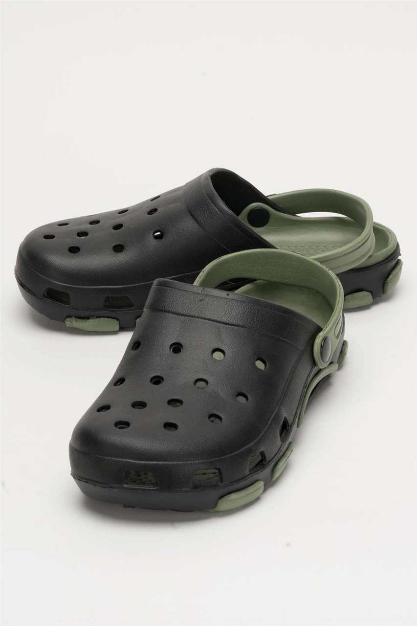 Unisex Çift Tabanlı Ortopedik Hemşire Doktor Aşçı Laboratuvar Deniz Havuz Terliği Sandalet Siyah - Yeşil Siyah - Yeşil