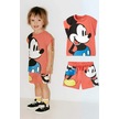 Unisex Çocuk Mickey Mouse Baskılı Pamuklu Bisiklet Yaka T- Shirt Ve Şort Alt Üst Takım Somon