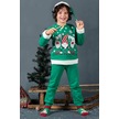 Unisex Çocuk Yılbaşı Christmas Noel Temalı 3 Cin Model Kapüşonlu 3 İp Şardonlu 3 Parça Alt Üst Takım Yeşil
