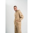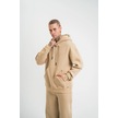 Unisex Double Oversize Kapşonlu Basic Sweatshirt - Bej Siyah
