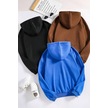 Unisex Düz 3' Lü Baskısız Kapüşonlu Oversize Sweatshirt Mavi