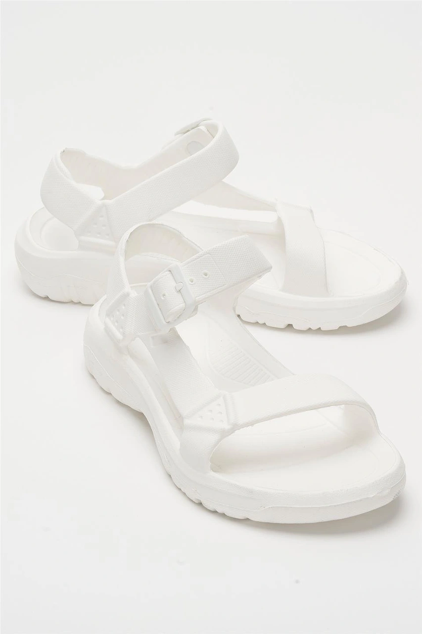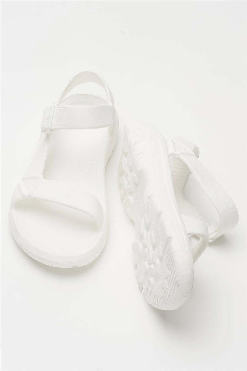 Unisex Eva Spor Kaymaz Yürüyüş Sandaleti Beyaz BEYAZ