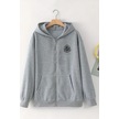 Unisex Gri Kapüşonlu Fermuarlı Hırka California Logo Baskılı, Şardonlu Kalın Kumaş Gri
