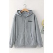 Unisex Gri Kapüşonlu Fermuarlı Hırka Flight Baskılı, Şardonlu Kalın Kumaş Gri