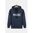 Unisex İndigo Kapüşonlu Polizei Baskılı Slim Fit Kanguru Cepli Sweatshirt Indigo