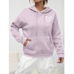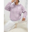 Unisex Kadın/Erkek Kalp Desenli Kanguru Cepli Düşük Omuz Ipli Kapüşonlu Üst