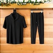 Unisex Kadın/erkek Özel Bürümcük Krinkıl Kumaş Yazlık Likralı Kısa Kol Tişört Eşofman Elbise Takım Siyah - Siyah