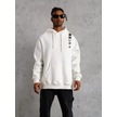 Unisex Kapşonlu Uzun Kol Baskılı Sweetshirt - Beyaz Bej - Beyaz