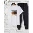 Unisex Leopar Kalp Baskılı Eşofman Takımı Beyaz