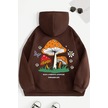Unisex Mantar Baskılı Oversize Sweatshirt Kahverengi