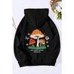 Unisex Mantar Baskılı Oversize Sweatshirt Siyah