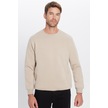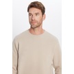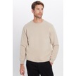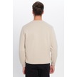 Unisex Oversize Geniş Kesim Pamuklu Yumuşak Dokulu Polarlı Basic Taş Renk Bisiklet Yaka Sweatshirt-23348 Taş