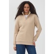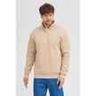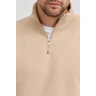 Unisex Regular Fit Rahat Kesim Pamuklu Içi Polarlı Yarım Fermuarlı Bej Dik Yaka Sweatshirt Bej