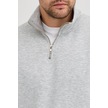 Unisex Regular Fit Rahat Kesim Pamuklu Içi Polarlı Yarım Fermuarlı Gri Dik Yaka Sweatshirt Gri