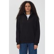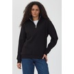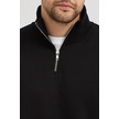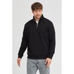Unisex Regular Fit Rahat Kesim Pamuklu Içi Polarlı Yarım Fermuarlı Siyah Dik Yaka Sweatshirt Siyah