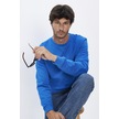 Unisex Relax Fit Rahat Kesim %100 Pamuk Basic Saks Mavi Bisiklet Yaka Sweatshirt-31743-saks Mavi Saks Mavi