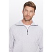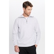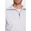 Unisex Relax Fit Rahat Kesim Fitilli Desenli Pamuklu Yarım Fermuarlı Gri Dik Yaka Sweatshirt-31991 Gri