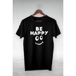 Unisex Siyah -be Happy Smile-ıllustrasyon Çizim -vip Tasarım Tshirt Siyah