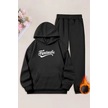 Unisex Siyah Fantastic Baskılı Eşofman Kapüşon- Kışlık Şardonlu Kumaş Siyah