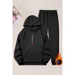 Unisex Siyah İmpossible Baskılı Eşofman Kapüşon- Kışlık Şardonlu Kumaş Siyah
