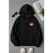 Unisex Siyah Kapüşonlu Fermuarlı Sweatshirt Palmiye Minimal Baskılı, Şardonlu Kalın Kumaş Siyah