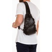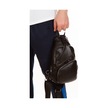 Unisex Siyah Yıkama Deri Göğüs Ve Omuz Çantası Kulaklık Çıkışlı A