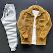 Unisex Taba Peluş Polar Hırka Gömlek Gri Eşofman Altı Takım Taba - Gri