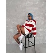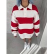 Unisex Üç İplik Parçalı Yakalı Sweatshirt - Kırmızı Karışık Çok Renkli