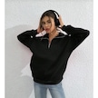 Unisex Uzun Kol Yarım Farmuarlı Yakalı Basic Sweatshirt - Siyah Siyah
