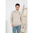 Unisex Yarım Boğazlı Baskılı Dokuma Triko - Bej Bej