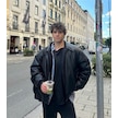 Unisex Yeni Sezon Kapitone Dolgulu Oversize Vintage Siyah Deri