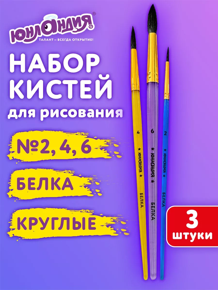 Unlandia Okul İçin 3'lü Yuvarlak Gelincik Fırçası Resim Fırçaları Seti 246613092