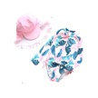 Upf50+ Kız Çocuk Mayo Beyaz Pembe Yeşil Yaprak Desen Kolay Giyilen Cool Mayo Şapka Set Yeşil