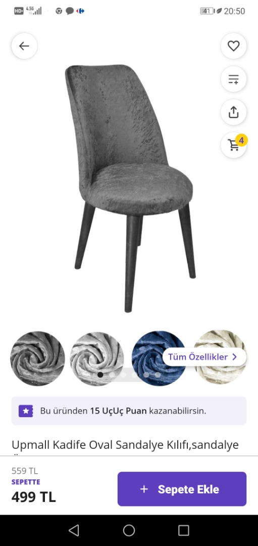 Upmall Kadife Oval Sandalye Kılıfı,sandalye Örtüsü Antrast 6 Adet