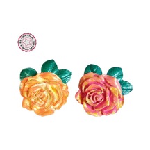 Uretti - Ayşe 7362 0385 El Yapımı Minik 2'li Pembe - Turuncu Renk Gül Magnet - 6 X 7 Cm