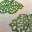 Uretti - Gülin 6449 - Ebru Sanatı İle Elde Yapılmış Lazer Kesim Keçe Supla 2li Takım 40cm - Yeşil Yeşil