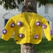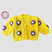 Uretti - Gülnur 2184 - El Örgüsü Mor Çiçekli Kız Çocuk Hırka 5 Yaş - Sarı Sarı