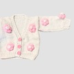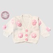 Uretti - Gülnur 2184 - El Örgüsü Pembe Çiçekli Kız Çocuk Hırka 2 Yaş - Beyaz Beyaz