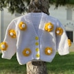 Uretti - Gülnur 2184 - El Örgüsü Sarı Çiçekli Kız Çocuk Hırka 5 Yaş - Beyaz Beyaz