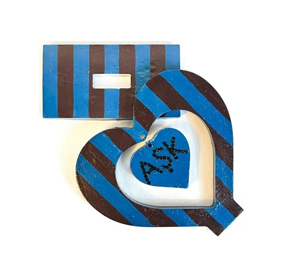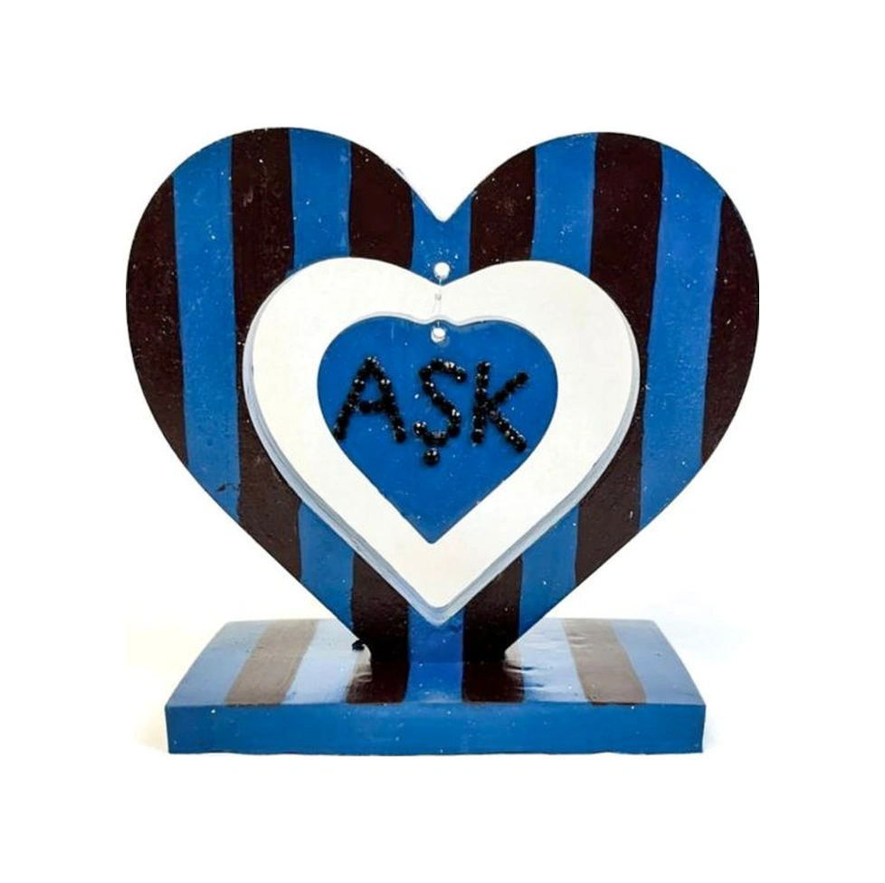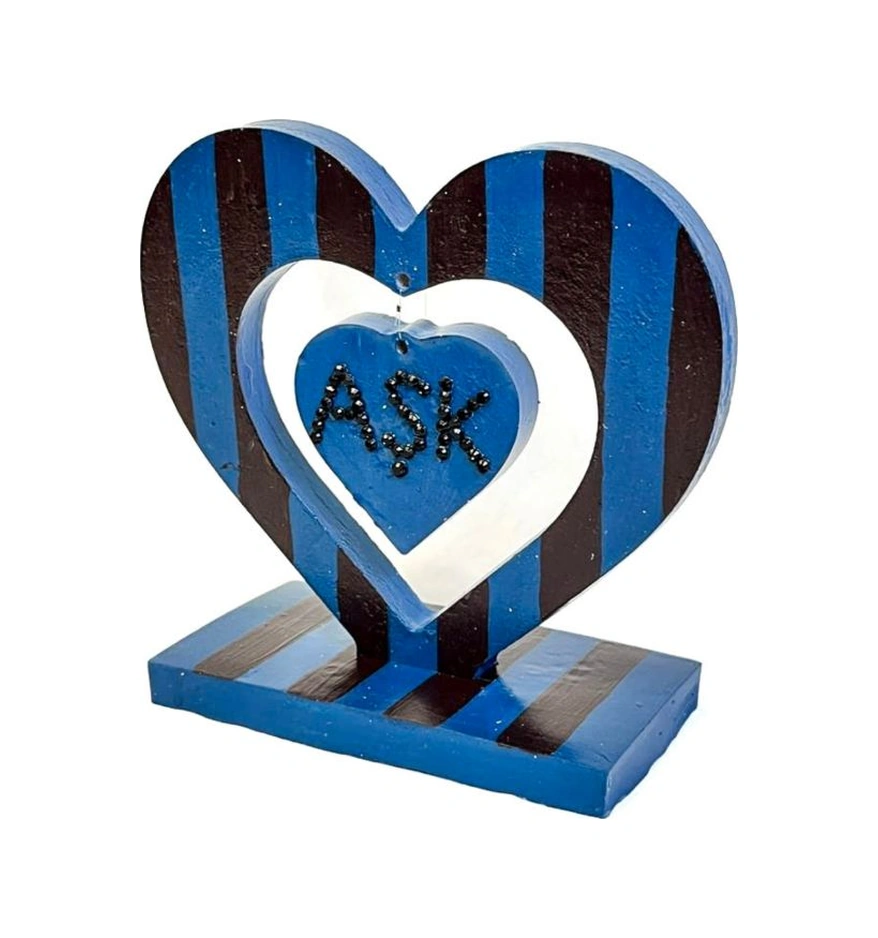 Uretti - Hülya 6683 9704 Bordo Mavi El Yapımı Çizgili Kalp Şeklinde Dekoratif Hediyelik Obje 1 Adet