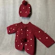 Uretti - Yıldız 7202 - El Örgüsü Bordo Hırka - Şapka İkili Bebek Takımı - 1/2 Yaş Bordo