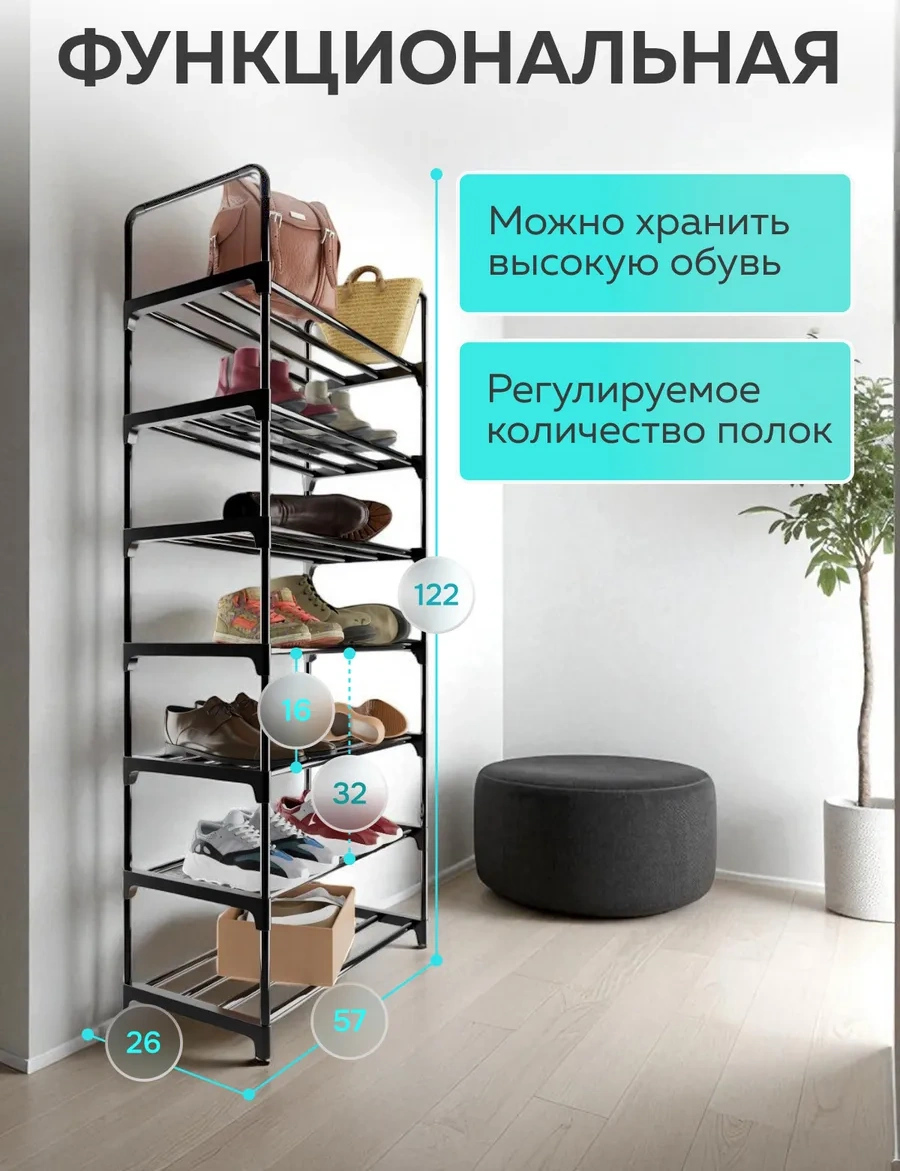 Urm Antre İçin Metal Ayakkabı Dolabı, 7 Raflı Ayakkabı Rafı 119399189 Siyah