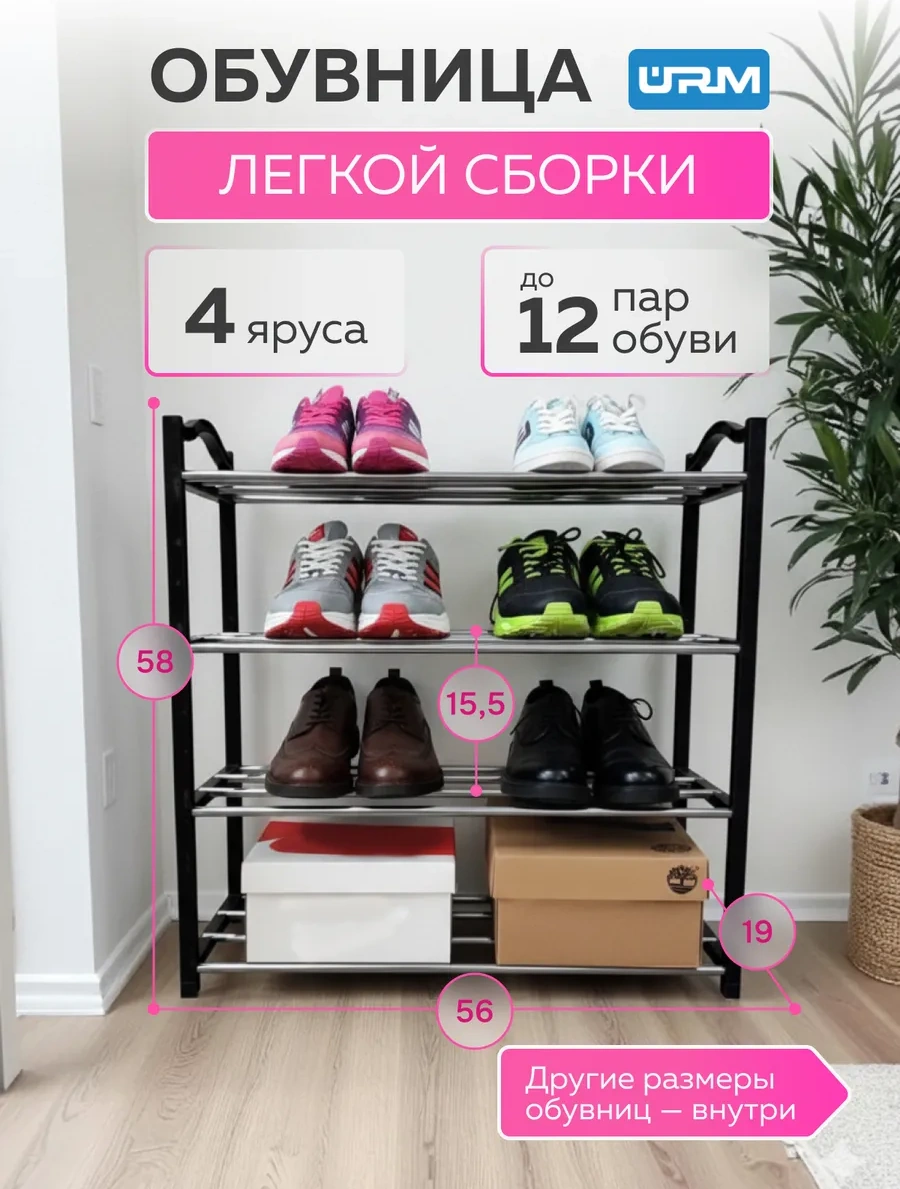 Urm Antre İçin Metal Ayakkabı Dolabı Ve Raf, 4 Katmanlı 461268234 Siyah