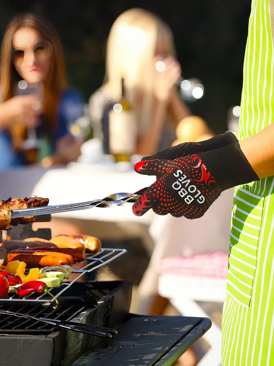 Urm Barbekü Ve Izgara İçin Ateşe Dayanıklı, Çift Katmanlı Eldivenler 144276881