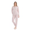 Dantel Yaka Detaylı Pamuklu Penye Kumaş Pijama Takımı Açık Pembe