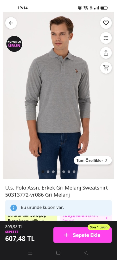 U.s. Polo Assn. Erkek Antrasit Melanj Sweatshirt 50313772-vr081 Antrasit Melanj