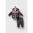 4-5-6 Yaş Kot Pantolonlu Pilot Mont Uzun Kollu Penye Sweat 3lü Erkek Çocuk Takımı Gri