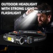 Usb Şarj Edilebilir Xpe + Cob Led Far Su Geçirmez El Feneri Acil Durum Işığı Açık Kamp Yürüyüş Balıkçılık İçin Araba Tamir Işığı Pil İle Siyah
