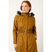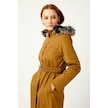 Üst Bölümü Dikiş Detaylı İçi Kürk Kaplı Bondit Parka Taba-taba Taba