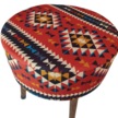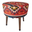Ustaagac Puf Koltuk Bench Tabure Anadolu Kilim Al- Ahşap Ayaklı Kırmızı - Beyaz